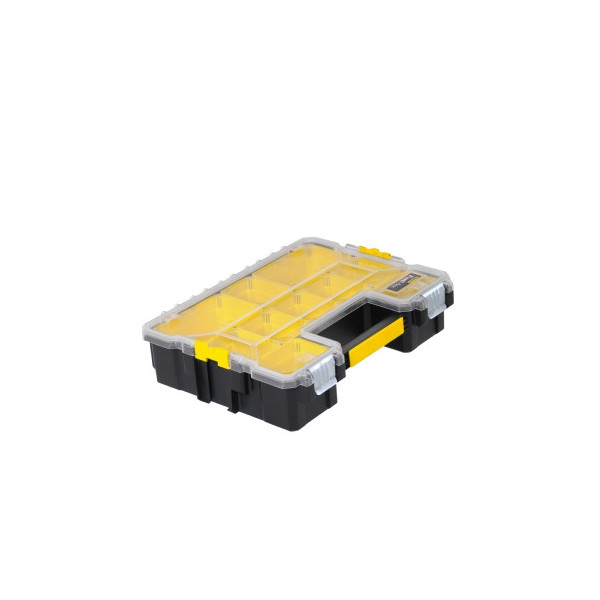 Stanley FatMax profi organizér s hlbokými priehradkami je vybavený plastovými uzávermi.